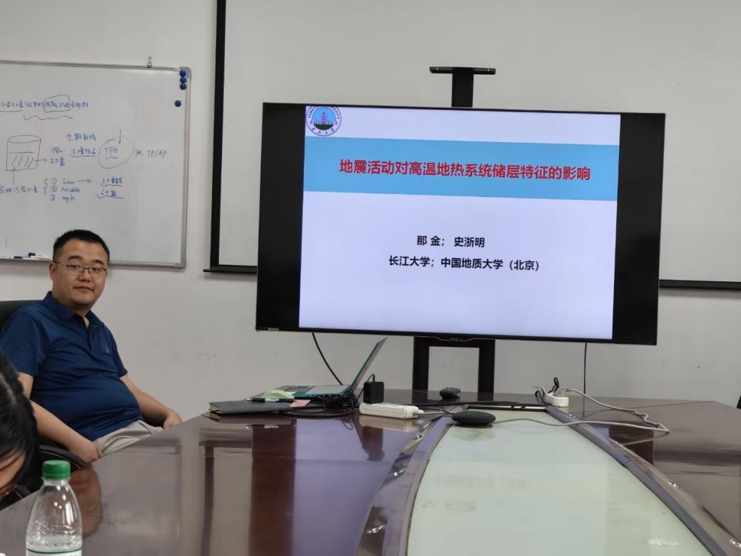首先,那金副教授以“地震活动对高温地热系统储层特征的影响”为主题,深入探讨地震对不同储层中温度和流体循环动态演化的影响。他指出,有效压力的增加会导致裂缝渗透率呈下降趋势且当加载围压超过一定阈值时,渗透率基本不受围压的影响,通过构建多场耦合数值模型以分析花岗岩裂隙通道内渗流演化规律,有利于地震活跃地区的地热能开发。
