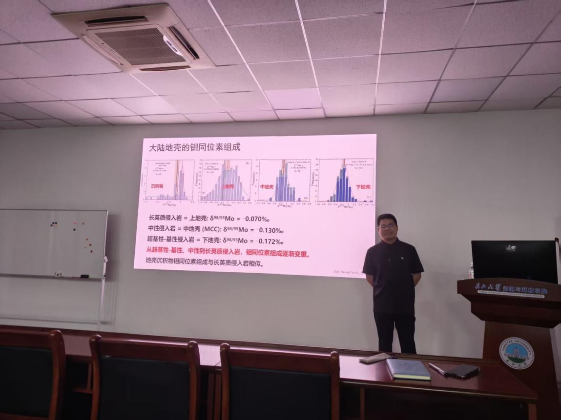 (通讯员 雷鸣)2026年4月13日,应太阳成集团tyc122cc郭锋教授和雷鸣特任教授的邀请,中国地质大学(北京)地球科学与资源公司黄丰教授来院做了题目为“’钼’击弧岩浆成因和陆壳组成”的学术汇报。 黄丰教授首先从钼元素的基本化学性质出发,介绍了钼在岩浆演化过程中的赋存形式和变价特征,确定了它是一个氧化还原敏感的不相容元素。通过总结已有的关于地幔和地壳来源的岩石的钼元素和同位素组成的对比,确定了亏损地幔具有异常低的钼元素含量和较轻的钼同位素组成,对大陆地壳的钼同位素组成的研究仅限于大陆上地壳,已有研究揭示了大陆地壳很可能具有重于亏损地幔的钼同位素组成。鉴于大陆地壳和亏损地幔之间钼同位素组成的极大差异,提出了两个核心科学问题:(1)硅酸盐地球(包括地幔和地壳)的钼同位素组成是如何达到平衡的?和(2)大陆中下地壳和全大陆地壳的钼同位素组成到底如何? 针对第一个科学问题,黄丰教授选择了位于青藏高原中部形成于典型大洋俯冲期间的高镁安山岩开展研究,揭示了它们具有极轻的钼同位素组成。这些高镁安山岩具有与周边同时代沉积物一致的Sr-Nd同位素组成,结合它们类似沉积物熔体交代地幔楔形成的典型高镁安山岩的微量元素特征,确定了这些极轻的钼同位素组成来自俯冲沉积物。因此,俯冲的大洋沉积物很可能交代地幔楔形成轻钼同位素储库。进一步对跨越万里的特提斯域来自岩石圈地幔的超钾质岩石的研究也揭示了它们具有轻于亏损地幔的钼同位素组成,确定了特提斯域大陆岩石圈地幔很是轻钼同位素储库,可以在一定程度上平衡大陆地壳的重钼同位素组成。 针对第二个科学问题,通过对青藏高原南部冈底斯弧剖面岩浆岩组成与大陆地壳物质的地球物理性质和化学组成对比,确定了冈底斯弧不同岩性组成的侵入岩能够代表不同深度的大陆地壳物质组成。在确定基性、中性和酸性岩石分别代表大陆下、中和上地壳的研究方案后,进一步搜集和整理全球已发表的显生宙侵入岩,系统厘定了大陆下、中和上地壳的钼同位素组成。结合大陆地壳不同的结构模式,首次给出了大陆地壳的钼同位素组成的推荐值。结合全球尺度的壳幔分异和演化模型,确定了现今的壳幔分异过程可能达到了动态平衡。 汇报结束后,参与报告的师生踊跃提问,针对钼同位素在地壳的组成和壳幔分异过程的应用上进行了深入讨论,对钼同位素的其他可能的应用方向(如矿床学研究,示踪大陆俯冲过程)开展了细致分析,为进一步了解钼同位素在地球科学研究中的应用打下了基础。(审核 郭锋 编辑 王继敏)