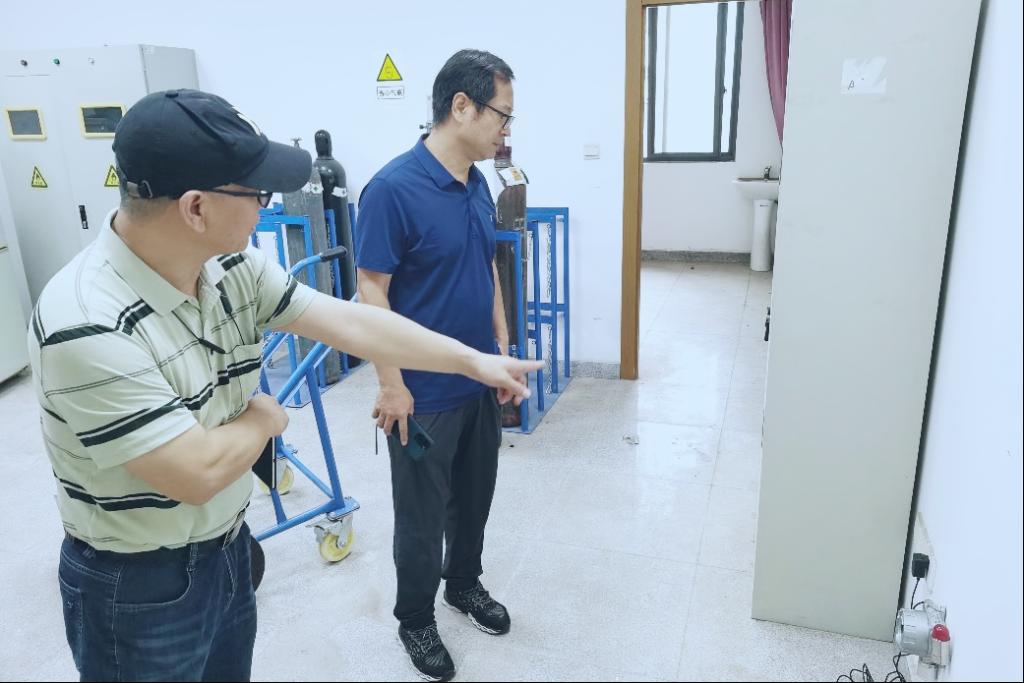 在实验室安全检查过程中,肖书记对实验人员强调要高度重视防火安全,做好应急预案,及时配备消防设备,保持良好通风环境;做好试剂、物品的规范存放,危化品的严格管控,废水废液废品的及时处置;加强实验室安全管理与建设,落实责任人。
