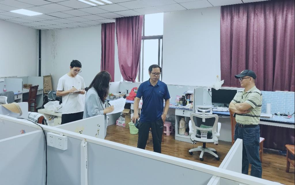 此次检查的目的在于查找问题,消除安全隐患。肖书记首先对办公场所的消防通道是否通畅、楼道及安全通道是否堆放易燃易爆等物品、安全出口和应急照明是否配备齐全、房间内是否违规使用电烧水器等大功率电器几个方面进行了详细检查,在公司研究生公共办公室,肖书记重点强调了员工用电安全、学习环境保持,要求安全人员普及安全知识,深化员工安全意识,提升员工主动识别安全隐患的能力。