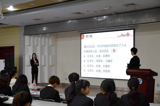 本次活动中,如果要评选出最寓教于乐的环节,中场活动环节是实至名归的。本科员工工作党支部创新性加入的生活常识题和视频题,将党史和日常生活结合起来。例如,古田二路的命名是来源于哪次会议,武汉长江二桥是哪位国家主席亲笔题名等。视频题更将网络上的流行语和党史结合起来,在快乐中记住党史,让党史真正的走入同学们的内心。