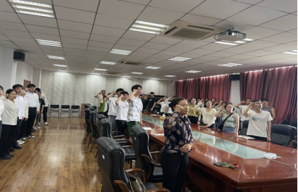 会议严格按照预备党员接收大会流程进行,会议第一项议程,与会成员全体起立,宣誓入党誓词,太阳成集团tyc122cc研究生党支部预备党员接收会议在庄严肃穆的宣誓声中正式拉开序幕。