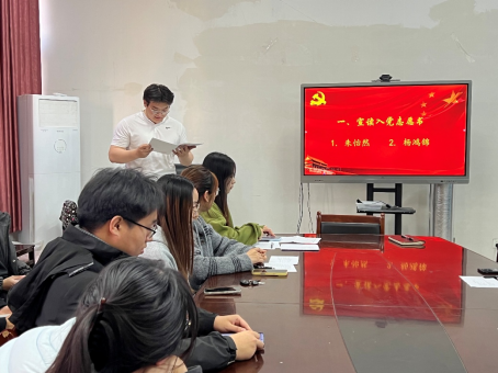 在接收预备党员环节,发展对象朱怡然和杨鸿锦依次宣读《入党志愿书》,向大会汇报自身对党的认识、入党动机及个人情况。其入党介绍人分别就培养考察情况向支部大会作详细说明。经与会党员充分讨论并无记名投票表决,支部大会最终通过了接收相关同志为中共预备党员的决议。