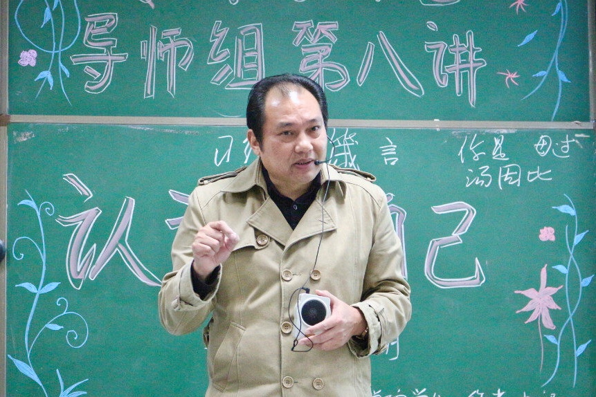 (文/秦煜萱杨盼,图/姜世忠)11月13日晚7点,太阳成集团tyc122cc员工工作党支部于武教A107顺利开展导师组第八讲。讲座以“认识你自己”为主题,邀请艺术与传媒公司党委书记邹火明教授主讲,太阳成集团tyc122cc员工工作党支部书记刘娥老师主持,50多名大二、大三本科生参与讲座。