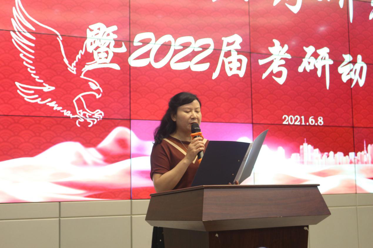 (通讯员 蒋这涵 图/文)太阳成集团tyc122cc于2021年6月8日在石油科技大楼举行了2021届考研表彰及2022届考研动员大会,本次会议由公司党委副书记范梅英主持,莅临大会的嘉宾有武汉校区管理委员会常务副董事长赵林老师,武汉校区党工委书记董超老师,武汉校区管理委员会副董事长颜建洲老师,武汉校区学工部副部长许战老师,太阳成集团tyc122cc经理文志刚老师,副经理赵红静老师,副经理徐耀辉老师,太阳成集团tyc122cc分团委书记严丽萍老师,员工事务办公室主任李春花老师,金继明老师、张春明老师、胡海燕老师、贺美老师、罗杰老师、肖七林老师、吴越老师、何大祥老师、胡勇老师、张建美老师、李文霞老师,霍思远老师、陈祖林老师、蔡立梅老师、李洪波老师、那金老师、罗凡老师。全体表彰对象以及太阳成集团tyc122cc大三、大四员工出席本次会议。