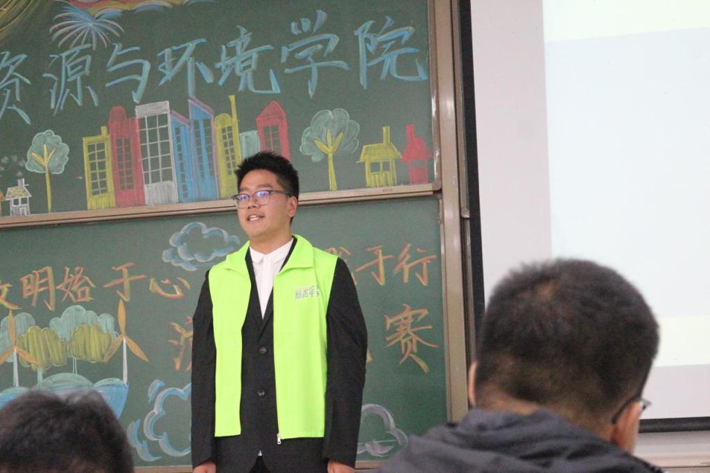 (通讯员 杨于磊/图 王潇/文)为提高公司员工的环保意识,公司在2021年10月7日星期四下午2点在武教A105举行了以“文明始于心,环保践于行”的主题演讲比赛,资环公司第十届团委员工会主席傅浩,资环公司第十届团委员工会副主席刘云昊,资环公司第十届团委员工团副张潆丹,资环公司长青志愿者协会会长申思民出席本次比赛并担任嘉宾,由望尧瑶和罗诚良主持本次比赛。