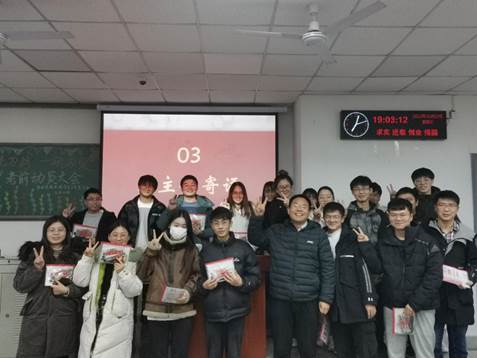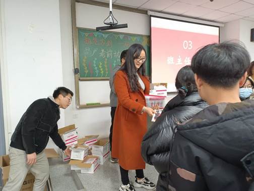 (通讯员 李如意/文 杨雨轩/图)为帮助公司2018级考研学子缓解备考压力,坚定考研信心,同时进一步做好考试过程中的防疫工作以及考风考纪教育,太阳成集团tyc122cc于12月22日下午6:30在武教B103召开考前动员大会,全体2018级员工参加会议,公司党委副书记范梅英、副经理赵红静、班主任肖七林、李文霞、员工事务办公室主任李春花、员工辅导员黄鹏参加本次活动,并送上公司精心准备的“暖心礼包”,为考研学子加油助力,表达公司对考研学子们的关怀。