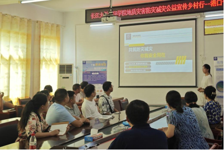讲座中,关鹏辉同学用通俗易懂的语言,深入浅出地讲解了地质、气象灾害的成因、类型、危害及预防措施等内容。在结合港口乡地形地势,雨季雨量分析当地可能会发生的地质灾害的同时,联系郑州7.20暴雨等多条正反实际案例,强调了监测预警的重要性,展示了地质、气象灾害带来的严重后果,让村民们深刻认识到防灾减灾工作的重要性和紧迫性。