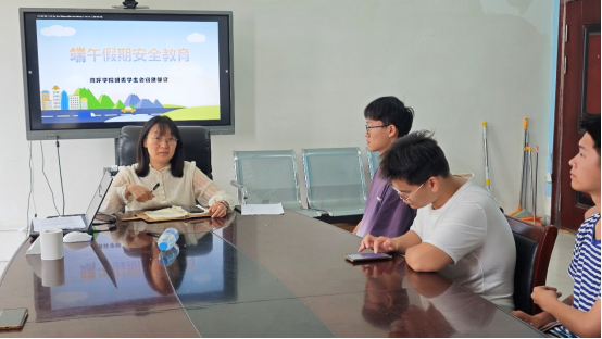 会上,首先由宿建部成员刘锦华对会议内容做简单介绍,提醒同学们注意交通安全、消防安全,对防溺水进行详细讲解。李春花老师强调,离校要严格执行离校登记制度,各班需详细统计员工离校时间、返校时间、出行地点及联系方式,做好上报工作。离校前关闭宿舍电源,严禁使用电热锅、电水壶等违规电器,禁止在宿舍存放易燃物品。安全责任重于泰山,各班要高度重视假期安全工作,做到“教育到位、管理到位、责任到位”。同时提醒同学们增强自我保护意识,平安度过端午假期。并要求各班级邀请班主任召开安全教育主题班会,将会议精神传达到每一位同学。