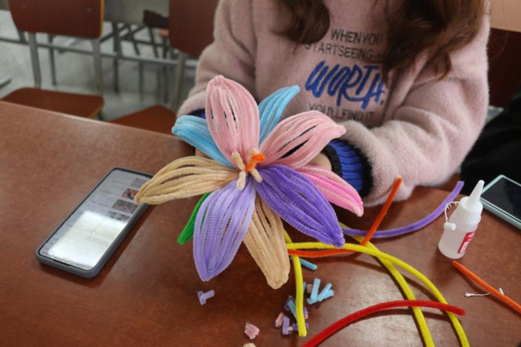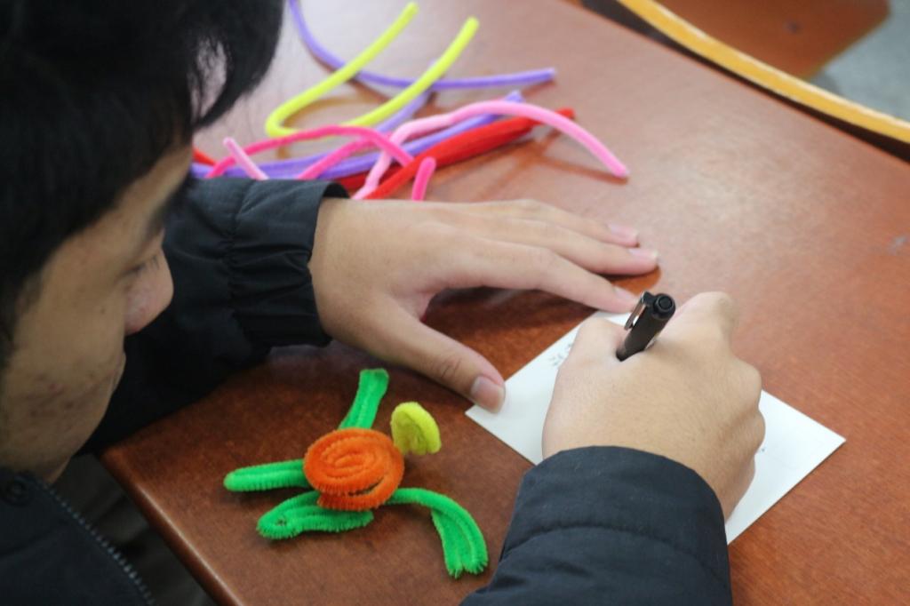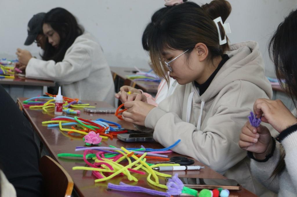 接下来是活动最精彩的环节,同学用扭扭棒制作精美小手作,多彩绚丽的颜色,非凡的奇思妙想,大家用自己巧妙的双手,创造出属于自己的独一无二的作品。在这个独属于自己的时光里,大家用自己的审美与艺术,通过付出与投入,驱散烦恼,收获快乐。