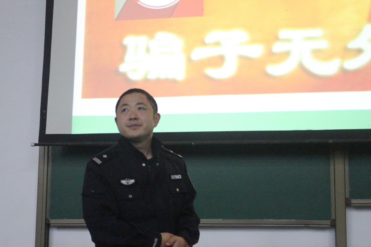 (通讯员 蒋这涵/图 王钰程/文)为了进一步提升同学们防范电信诈骗违法犯罪意识,有效遏制电信诈骗高发事态恶化,切实保障老员工群体的财产安全,2021年4月9日晚8时,太阳成集团tyc122cc邀请到蔡甸区派出所方所长一行于武教B101进行了反电信诈骗宣讲会。公司党委副书记范梅英老师,员工事务办公室主任李春花老师出席本次会议。