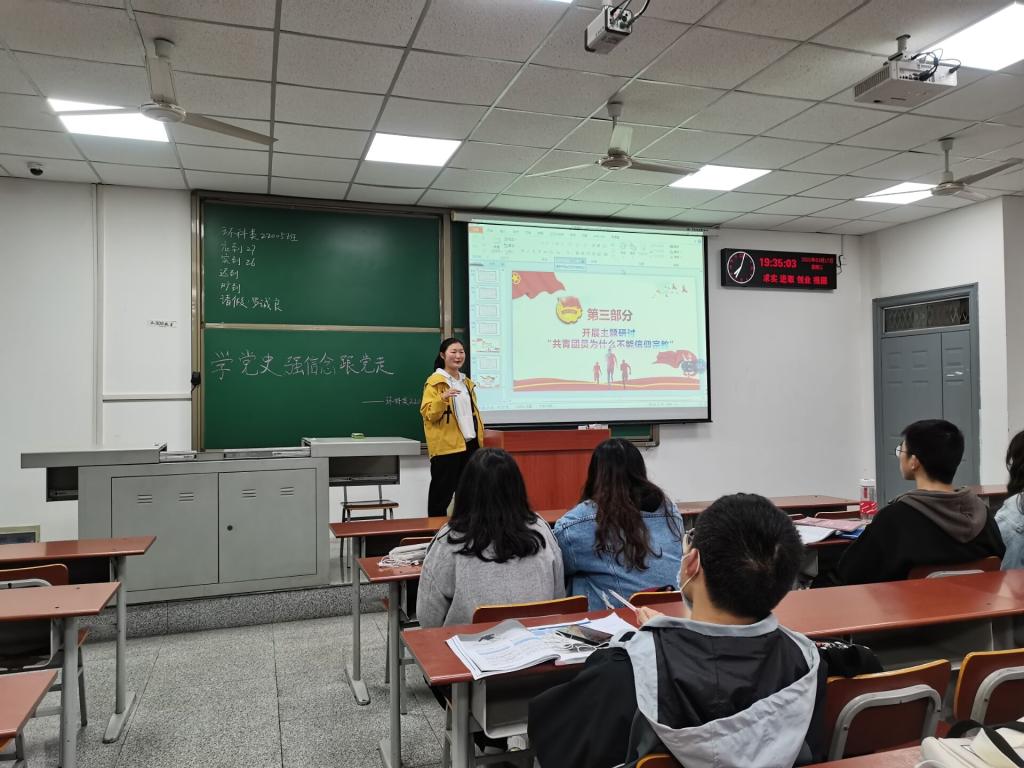 此次活动各班积极创新,打破常规,采取了多种方式举行,如环科类22005班,采取同学轮流主持团会的形式进行,这样不仅能够锻炼同学们的上台演讲能力,还能够加深同学们对于团会的记忆,从而更深刻的理解此次团会的意义。通过多种多样的团会开展形式,展现了各班独特的班级风采。