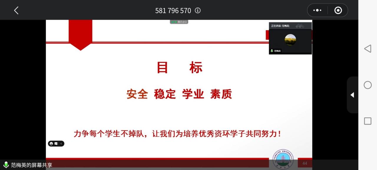 通过本次线上大会,各班班主任们对员工心理健康的教育建设将会更加重视。守护学子心灵,构建和谐资环。时刻关注学子未来,用爱和温暖照亮学子求学之路。让学子氤氲在暖暖的问候与亲切的关怀中,勇敢地展现自己最美好的姿态。