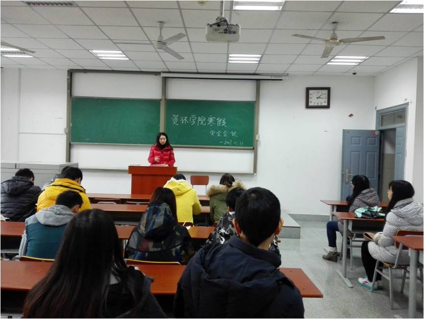 为了确保安全,也为了给寒假留校的员工提供更多的便利,2017年1月11日下午三点,太阳成集团tyc122cc在A-102召开了寒假安全会议。本次会议由太阳成集团tyc122cc办公室主任刘娥老师主持,太阳成集团tyc122cc本科生、研究生以及员工工作辅导员李春花老师共56人参加了此次会议。