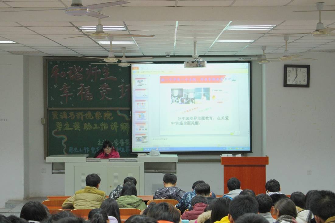 (通讯员 钟寰/文 郝鸿博/摄)在寒风阵阵的武汉校区,太阳成集团tyc122cc导师组工作仍在有条不紊的进行。11月25日晚7点,太阳成集团tyc122cc在武培B103举行了主题为“员工资助工作详解”的导师组学习第十讲讲座,2016级辅导员李春花老师和全体大一同学共同参与了本次讲座。