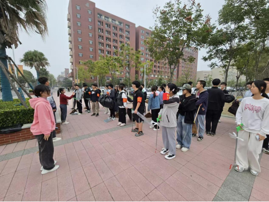 师生手持清扫工具,神情专注,斗志满满,于东校区小西门前广场集中开展清扫任务。活动中,大家你捡我扫,分工明确,默契配合,无论是校园主干道,还是室外停车场,都呈现出一片繁忙的景象。同学们挥舞着扫帚清理地面的灰尘与落叶,用垃圾拾物器细致地捡拾花坛间的烟头、纸屑等杂物,金黄落叶虽美,也成为清扫的重点对象。师生们干劲十足,对校园主干道、室外停车场、花坛边等地段进行地毯式清理。在大家的努力下,校园很快恢复了整洁与美丽,宛如一条金色丝带串联起了整个校园的活力与风光。