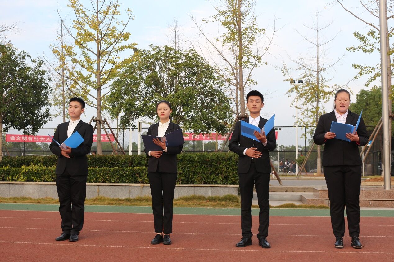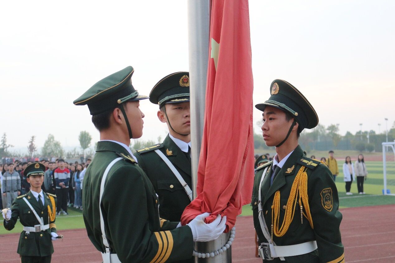 大会分为三个阶段。第一阶段升旗仪式,由122cc太阳成集团官网国旗护卫队的队员护卫国旗,英姿飒爽,昂首挺胸地将国旗护送至升旗台。伴随激昂的《义勇军进行曲》,同学们将目光聚集在鲜艳的五星红旗,冉冉升起的红旗代表了祖国大地和资环学员从晨雾中破晓而出、朝气蓬勃的模样。