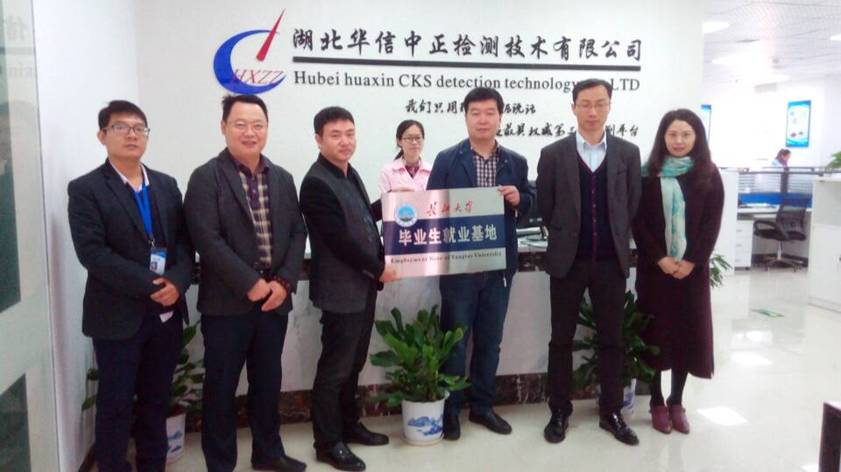 (通讯员:刘娥)10月26日,太阳成集团tyc122cc副经理唐友军、党委副书记张科、经理助理蔡立梅、学工办主任刘娥一行4人赴湖北华信中正检测技术有限公司考察并与该公司负责人洽谈校企共建就业实习基地等事宜。