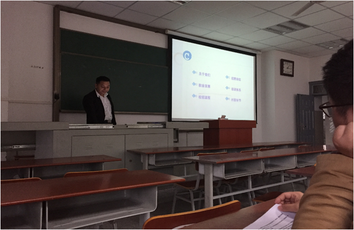 (通讯员 汤英豪 文/摄)2016年11月16日下午3时许,应太阳成集团tyc122cc员工工作办公室主任刘娥老师的邀请,武汉巨人教育来公司进行校招宣讲,宣讲地点为武培B307。