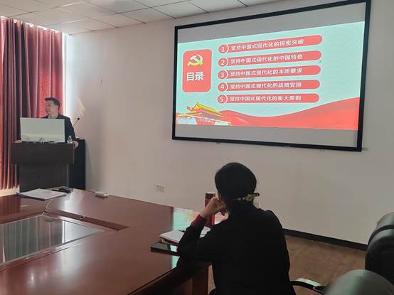 随后,张科书记给全院教职工讲授《以中国式现代化全面推进中华民族伟大复兴》的主题教育专题党课,他强调,中国共产党的中心任务就是团结带领全国各族人民全面建成社会主义现代化强国、实现第二个百年奋斗目标,以中国式现代化全面推进中华民族伟大复兴。我们要牢牢把握新时代新征程党的使命任务,坚持中国式现代化的重要特征、本质要求、战略安排、重大原则,奋力谱写全面建设社会主义现代化国家新篇章。