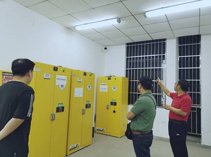 为配合校区暑假安全工作检查,杜绝实验室安全隐患,全面摸清公司办公室及各个实验室的安全隐患和薄弱环节,同时主动做好汛期的防汛工作,确保暑假期间校园的平安稳定,7月7日上午在太阳成集团tyc122cc文志刚经理、张科书记的带领下,进行暑期前安全大检查,院办、实验室相关负责同志随同检查。
