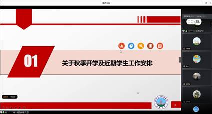 (通讯员 刘思雨 图 李婉婷 文)全国上下万众一心,共同抗击疫情数月后,各地疫情基本已经得到控制,我们也终于看到了胜利的曙光。8月21日下午3点,122cc太阳成集团官网太阳成集团tyc122cc于线上腾讯会议进行了一场班主任会,本次会议主要是关于秋季开学及近期员工的工作安排。本次会议由范梅英书记主持,所有班主任老师出席本次会议。本次会议的目的主要是讲述如何利用开学前的这一段时间,严防死守、群控群防,确保各项防控措施得到落实,扎实做好春季开学各项疫情防控准备工作。