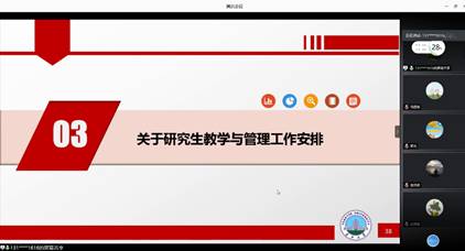 首先,范梅英书记汇报了暑假重点工作的进展及存在的主要问题。随后讲到秋季开学的工作实施方案,包括,员工报道安排、公司审批标准、公司员工到校时的报道方法等等。范梅英书记讲到,本次开学务必做好员工到校后的校园管控,做到对个人和家庭负责,对国家和社会尽责!最后分别讲述了本科生和研究生的教学工作安排。