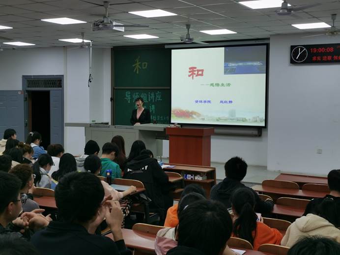 赵红静经理以“和”的两个读音作为切入点,引出讲座主题,给同学们提了一个小问题:看到“和”字第一个想到的是哪个读音呢?有趣地引出讲座主题,“和”,心态平和,感悟人生。