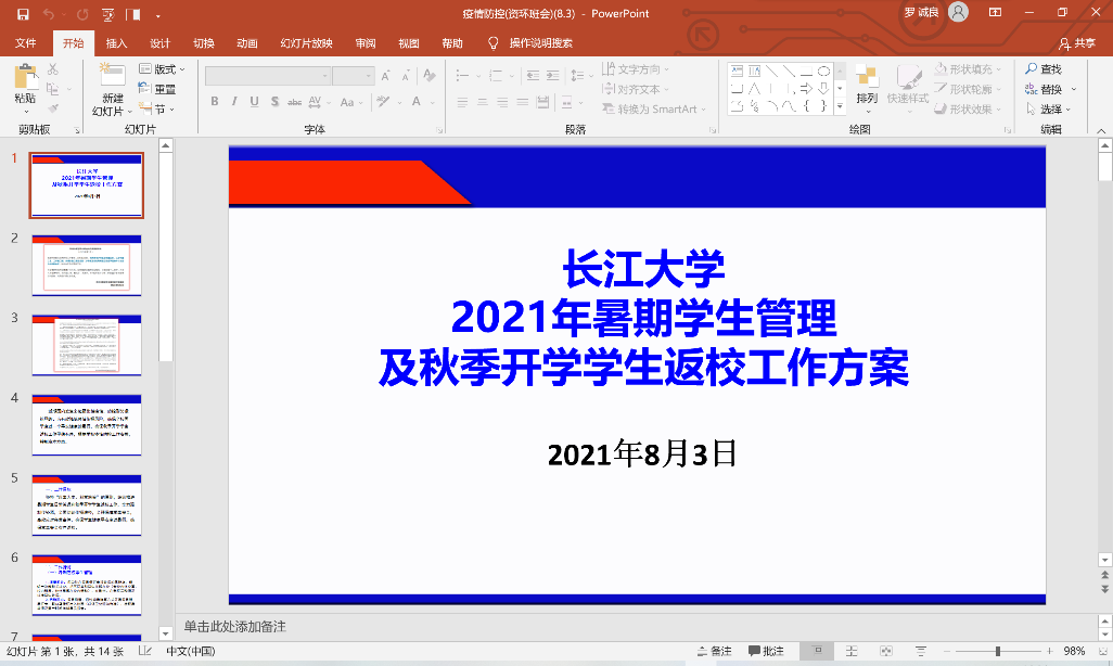 通过这次会议,帮助同学们明确了解了返校流程和疫情防控工作,无论在哪个环节都不能掉以轻心。秉持着安全第一的理念,只有人人自觉遵守规章制度,才能保障师生健康,校园安全,秋季返校开学及各项教学工作顺利进行。