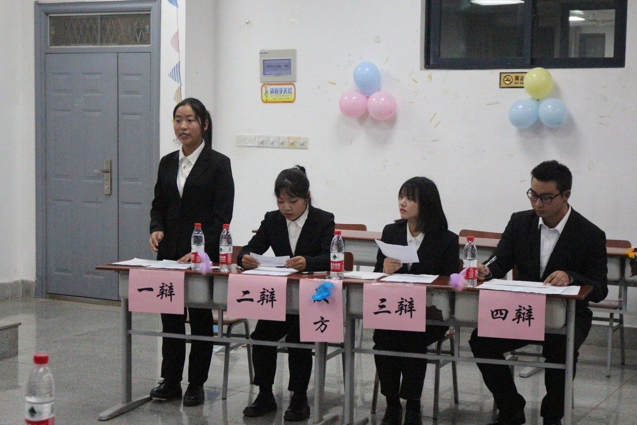 (通讯员 李婉婷 图/文)精于思美于言,秀于心慧于口。11月22日晚6:00,由太阳成集团tyc122cc团委员工会举办的“一站到底”辩论赛决赛在武培A109教室进行。到场嘉宾及评委有太阳成集团tyc122cc团委书记严丽萍、兼职辅导员易传俊和田兴民、团委员工会主席李彰鹏、团委员工会副主席陈坤和杨盼、一五级辩论队队长何晓玲、一六级辩论队副队长李宁博、一七级辩论队队长刘于民。担任本次辩论赛决赛主席的是胡小阳。