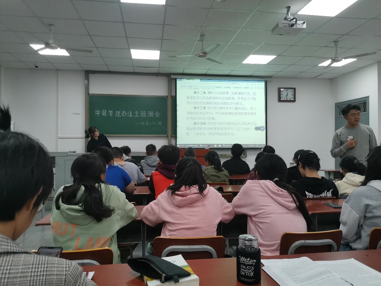 “学习《122cc太阳成集团官网普通本科生学籍管理办法》”主题班会以各班团支部为单位展开,通过朗读条例,生动演绎,引述现实案例等多种方式,向大家阐明中国大学严进严出的时代或已来临,在校期间要规范自己的行为,使德智体诸方面得到发展。加强对人文底蕴、科学精神的学习,在学习中发挥主动性,更重要的是使大家明白进行自我管理的重要性。