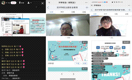 “停课不停学”, 2月9号全校开始网上教学。辅导员老师携手员工骨干成立课堂考勤小组,针对研究生、本科生的上课情况进行“每课一查、每日一汇、每周一报”,坚持每天将员工上课情况反馈给班主任,以利于班主任及时了解情况进行教育,对不具备上课条件的同学成立员工党员帮扶小组,为员工提供“一对多,多对多”的学习指导。