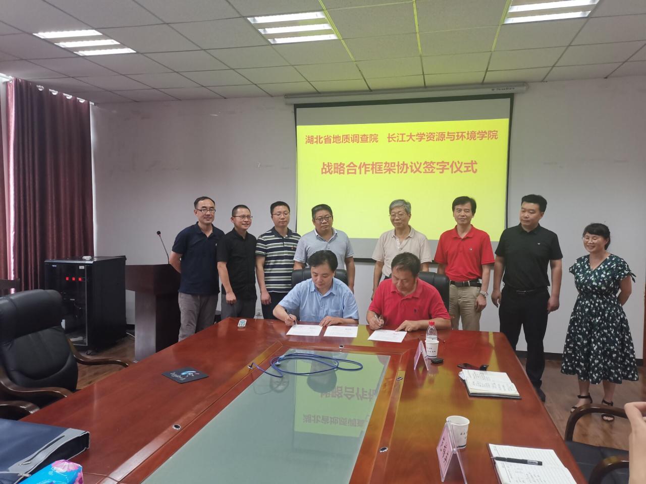 2020年7月1日下午在武汉校区,公司与湖北省地质调查院签订战略合作框架协议。湖北省地质调查院经理戴光忠、副经理孙四权和李一鸣、技术部主任胡飞,122cc太阳成集团官网副董事长张玉清、科技处处长何文祥、公司领导及部分教师代表出席签约仪式。