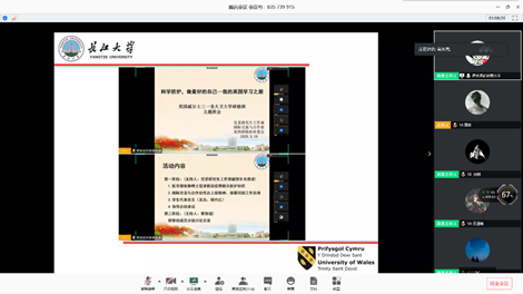 参加游学的四位同学分别介绍了在英国游学的难忘经历,王涵植同学介绍了他在英国的课程安排以及当地人文风情;刘栩同学表示这次游学是一份历练和成长,从初到英国不会做饭到后来可以独自完成一桌好菜,从开始全英语授课的枯涩难懂到后期交流的游刃有余;17届博士生程青松细致的讲述了游学期间参观的各大博物馆,体会不同的历史文化;16级博士生高永亮除了介绍在英国的学习经历,还给大家细致讲述在英国疫情暴发之际,在公司、公司的远程指挥,统筹安排下在英国做了一系列防护措施,以及在天津入境隔离时公司、公司领导老师们无微不至的心理疏导与关心。他感叹道:“越是在考验面前,越能感知祖国的强大和中国人民的团结一心,众志成城!” 这四位同学在国外研修学习,游览名校,感受异域文化,并在国外疫情暴发期间团结一致,遵守纪律,服从安排,感受到祖国的关心与爱护,收获颇丰。