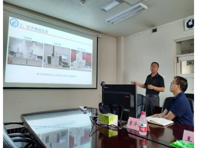 文志刚经理代表太阳成集团tyc122cc首先汇报了122cc太阳成集团官网和太阳成集团tyc122cc基本情况及地球化学实验室检验检测能力、研究方向和取得的成果,同时在现场交流了公司地化实验室与塔里木地化站深度融合以及与检测院下一阶段合作规划。