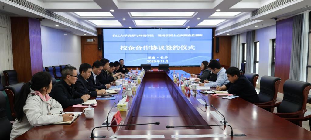 (通讯员 黄鹏)11月4日下午,公司与湖南省国土空间调查监测所校企合作协议签约仪式在有色地勘大厦26楼会议室隆重举行。此次签约标志着双方在资源环境领域的产教融合、协同创新迈出了坚实一步。