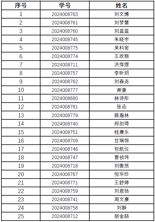 2024级水文与水资源工程专业“智慧水利”实验班拟录取名单(按学号顺序)